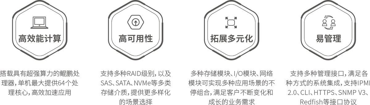 PA视讯国际 PA国际 KunTai R522通用服务器是神州数码基于鲲鹏基础硬件推出的新一代数据中心服务器。其具备高效能计算、多元扩展、高稳定性与绿色节能等特性。